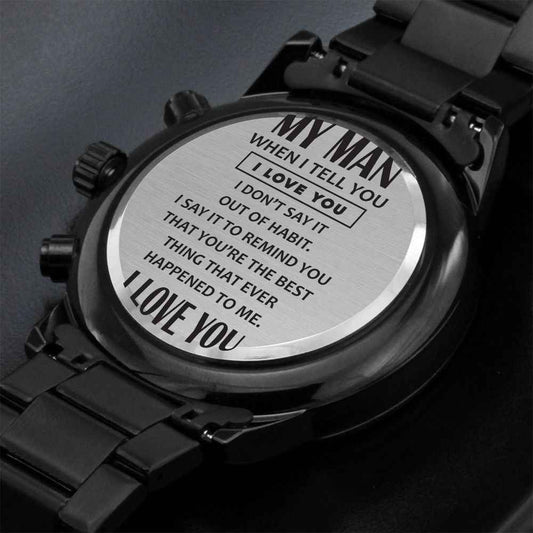 To My Man - When I Tell You I Love You Black Chronograph Watch