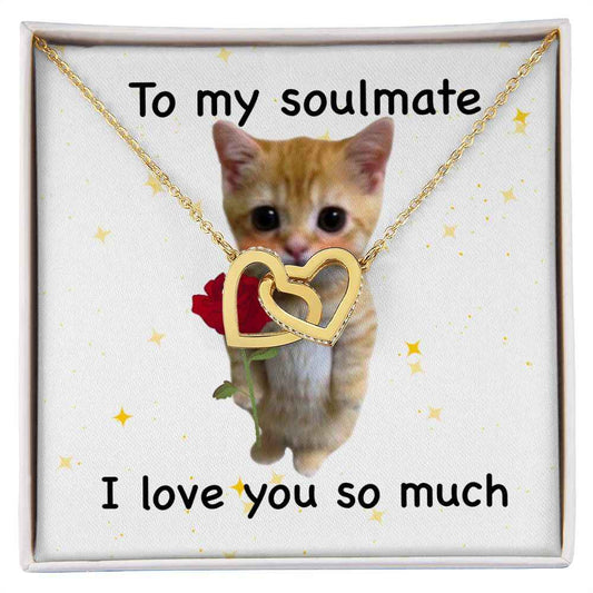 To my soulmate- I love you so much cute cat Interlocking Hearts necklace