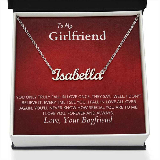 To My Girlfriend You truly fall in love once Personalized Name Necklace