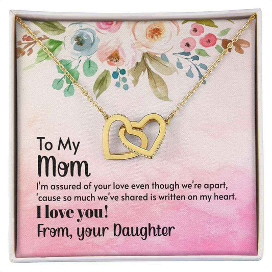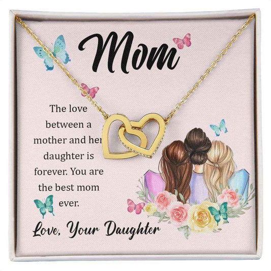 To Mom- The love between a mother and her daughter is forever Interlocking Hearts Necklace
