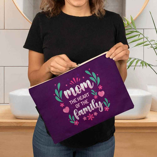 Mom The Heart Of The Family Large Fabric Zippered Pouch
