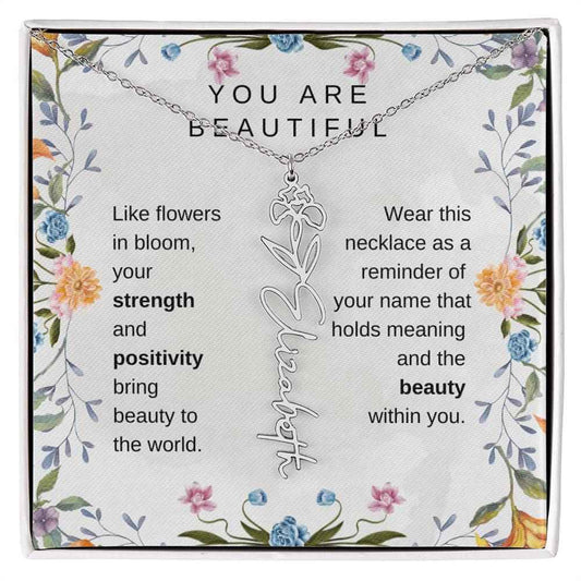 You Are Beautiful, Like flowers in bloom Birth Flower Name Necklace